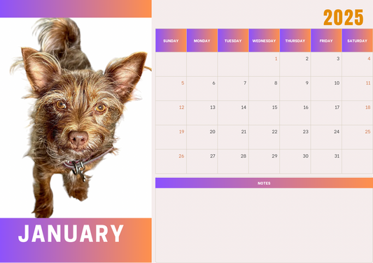 Collection: 2025 monthly Pet Calendars A4 landscape