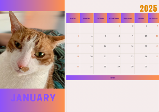 Cats 2 calendar 2025 A4 landscape
