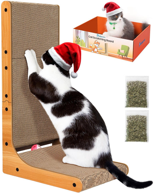 Petslucent Cat Scratcher, 26.8 Inch L Shape Cat Scratching Board with Box, Cat Scratching Cardboard with Ball Toy for Indoor Cats, Large Size