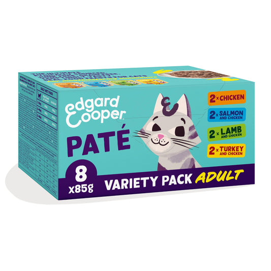 Edgard Cooper Grain Free Wet Cat Food Pate for Adult Cats (Salmon&Chicken 16 x 85g), Natural Cat Food in Cup for Sterilized or Active Cats, Fresh Meat, No Added Sugar