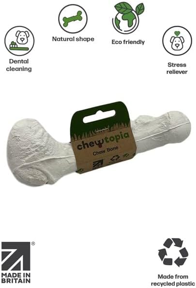 Bone Chew Toy for Dogs, Hardwearing, Durable Boredom Buster Dog Toy, Strong and Tough Toy for Dogs. Made in the UK. Made from Recycled Plastics. Helps Reduce Seperation Anxiety.