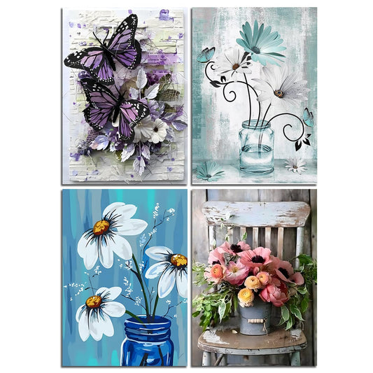 Muzagroo Art 5D Diamond Painting Kits for Adults, DIY Diamond Art Kits for Beginners, Turtle Diamond Dot Kits Gem Arts and Crafts for Living Room, Gem Painting Bedroom 4 PCS Wall Art