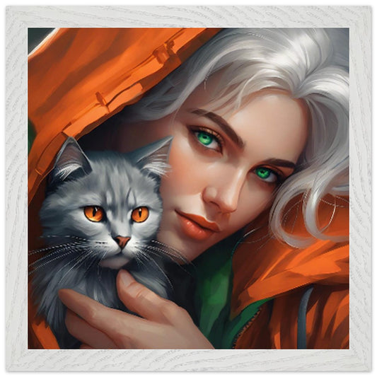 Mesmerizing Cat and their Human Mounted Framed Poster – Premium Oak or Ash Frame - Customisable
