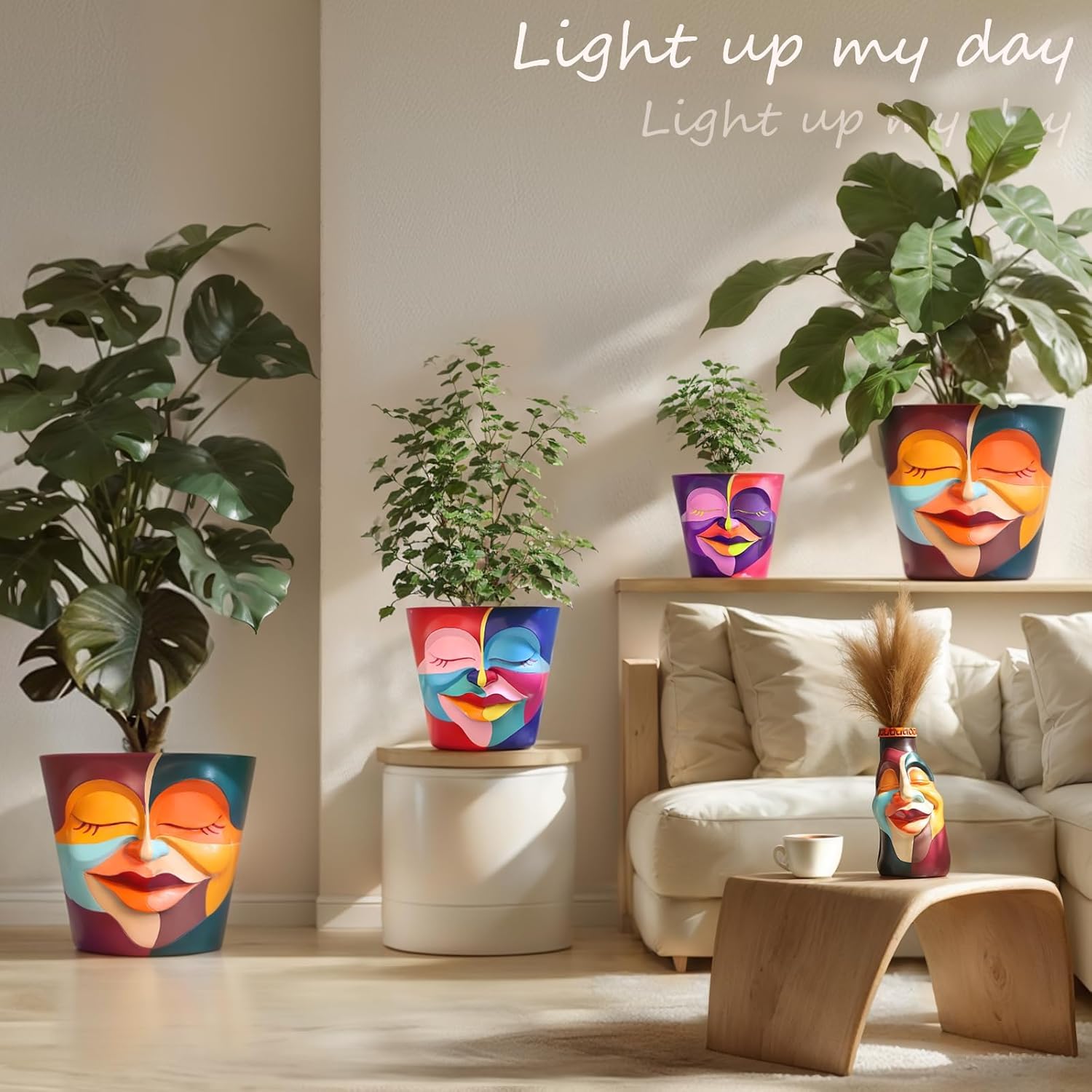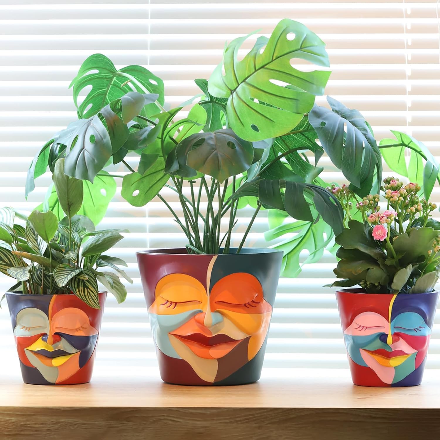 - 【Colourful Unique Face Design】 You'll fall in love with the bohemian inspired use of vibrant colours in the abstract face design that instantly brightens the look of your plants and flowers. This decorative face planters exude a peaceful zen atmosphere, with a charming, sleepy expression and a beaming smile that makes it irresistibly friendly.
