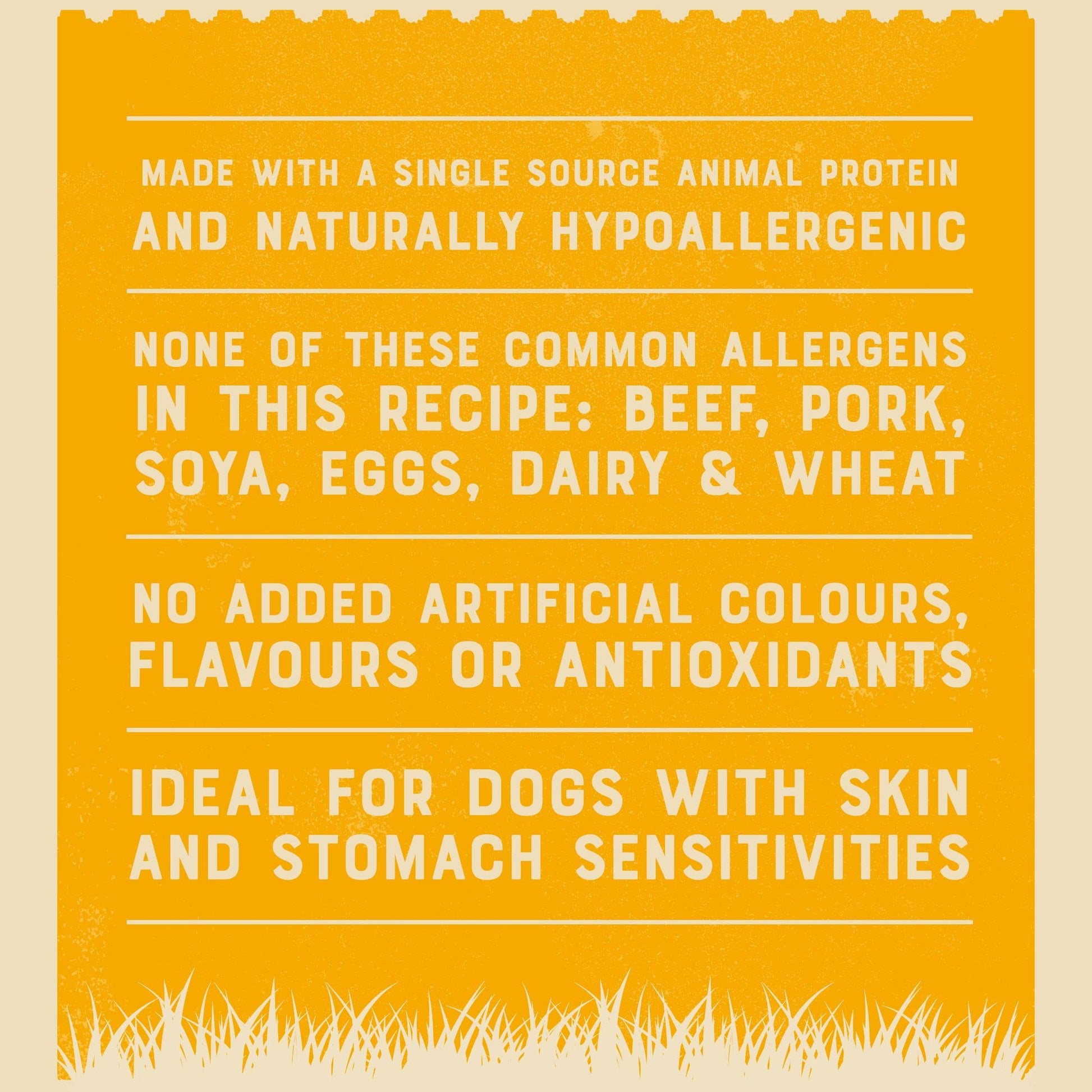 - Made with nourishing ingredients, this hypoallergenic dog food is great for pets with sensitivities as it excludes common allergens such as beef, pork, soya, eggs, dairy and wheat