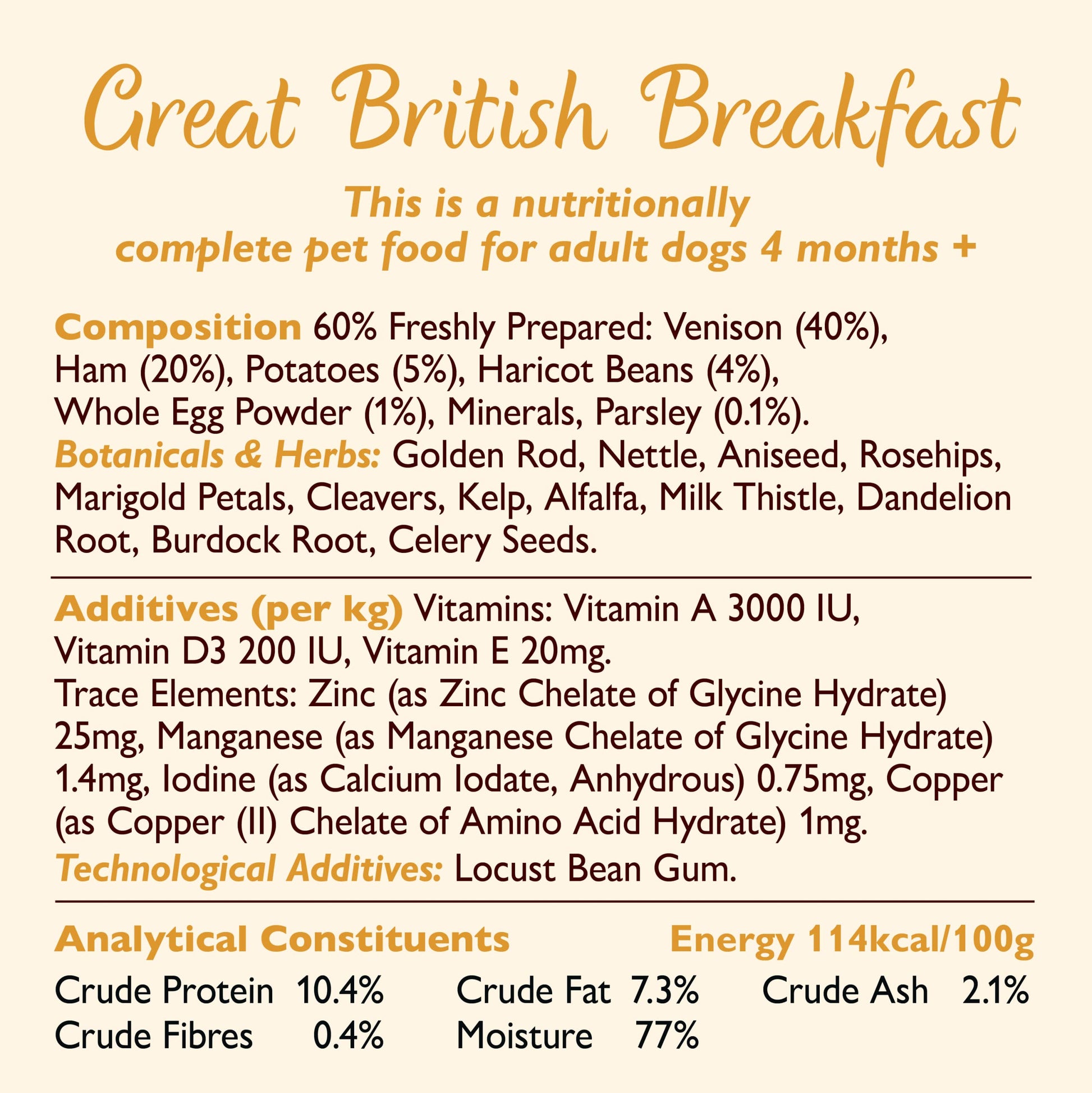 - Made with freshly prepared meat, vegetables, fruits and herbs