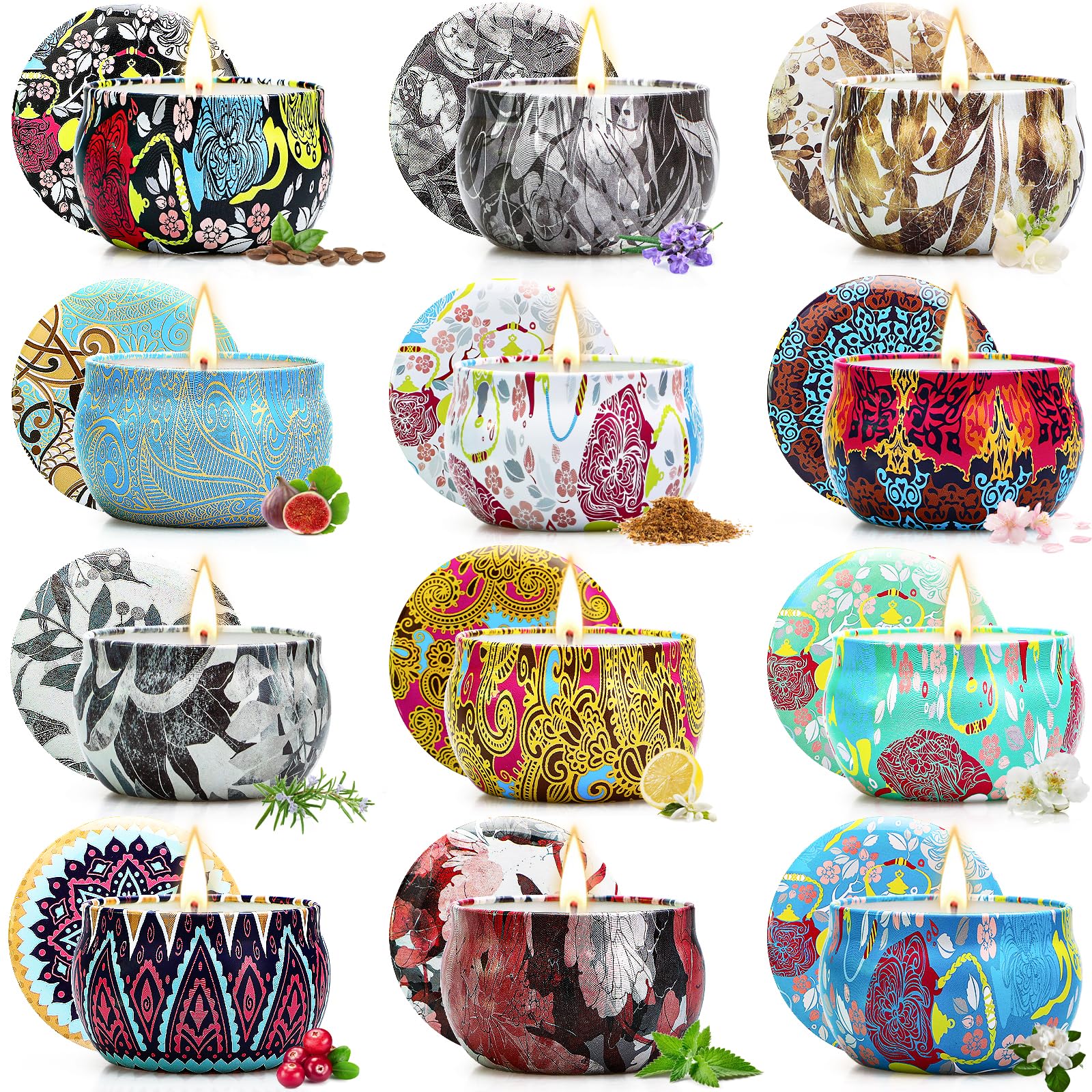 - GIFTS FOR WOMEN - Deliver a wealth of fragrances in a beautiful box specially created for gifting. The 24 pack candle collection is as unique as you are. The flame has a nice warm light when it shines through the floral tin. After the candle set is used up, these tins are also decorative containers for your home. The appearances of this collection explore both delicate and colourful personalities.
